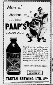 By 1964 Tartan was being characterized as “one of the more important primary industries in the Central Interior.” Paaps – “a brew of strength and character for those who like a little more body in their drink” – was introduced.